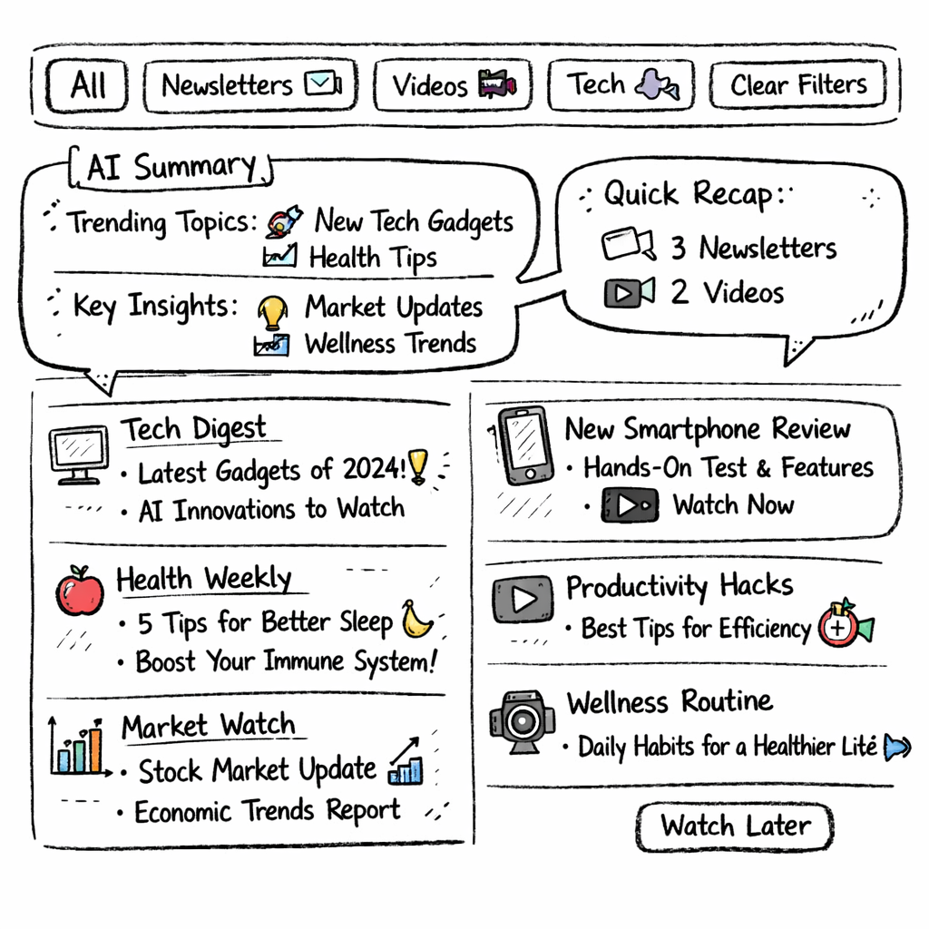 Key Takeaway: Smart filters + AI summaries give you the 20% of content that drives 80% of results.